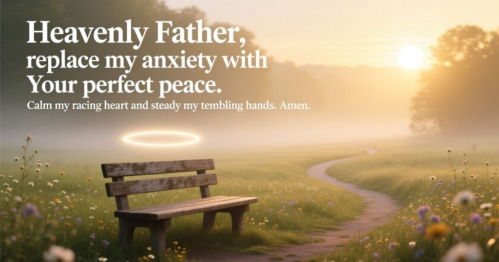 Heavenly Father, replace my anxiety with Your perfect peace. Calm my racing heart and steady my trembling hands. Amen.