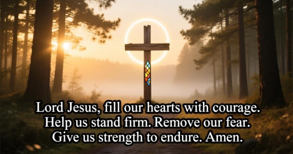 Lord Jesus, fill our hearts with courage. Help us stand firm. Remove our fear. Give us strength to endure. Amen.